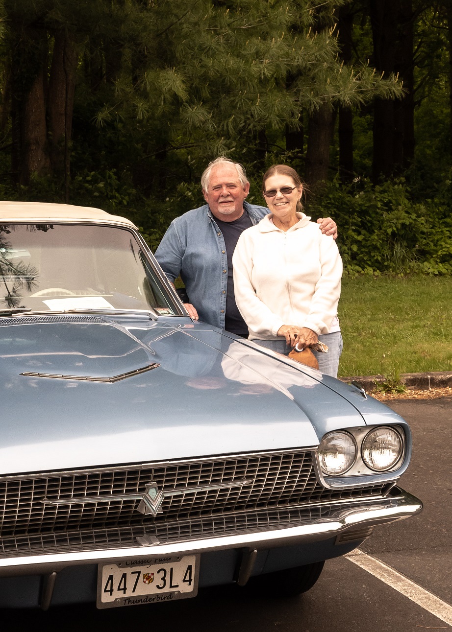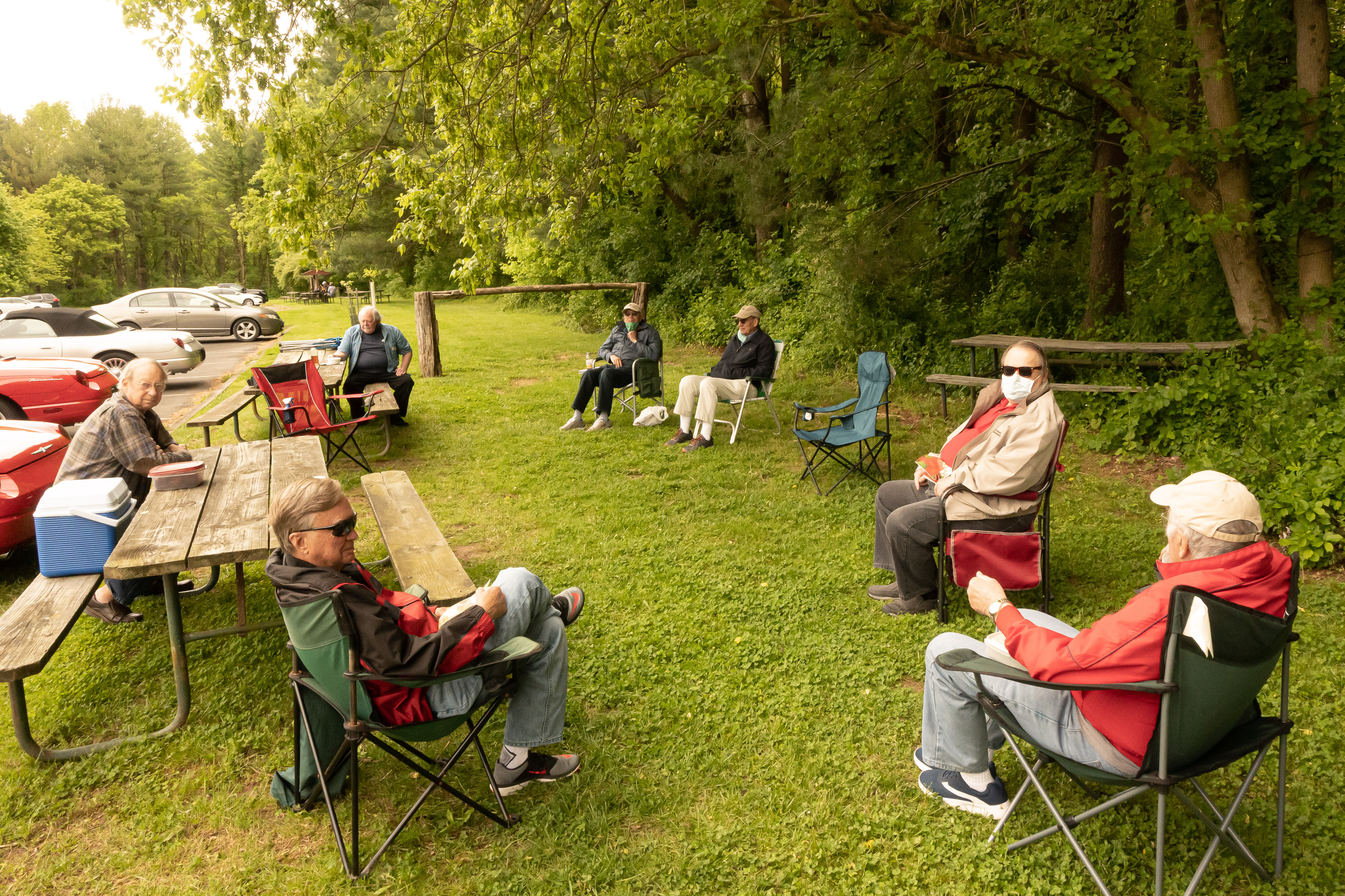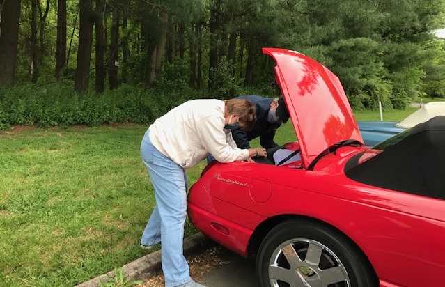 A We had a fabulous little picnic on May 17 for Thunderbird Appreciation Day and thank all that brought your birds out to show them off and enjoy the day. We had 9 couples, the Cherrys, the Denhams, the Hills, the Horns, the Kelleys (us), the Longs, the Panowitzs, the Skruchs, Tom Young and Linda Rodgers and Miss Anne Collins who always comes out for the MATC events. To stay perfectly legal, we split into 2 groups when we arrived at the picnic area, the men and the women. Are you surprised? I didn’t think so… We had our masks, we didn’t share food and we stayed 6 feet apart. Still had great conversation. It got a little windy and chilly so we didn’t stay but about 2 hours, but it was so nice to get out. We had a tech session, where Tom showed Phyllis how to replace the battery in a retro bird. Skip got a lot of great pictures which I’m sure Dan will displayed somewhere in the June newsletter.