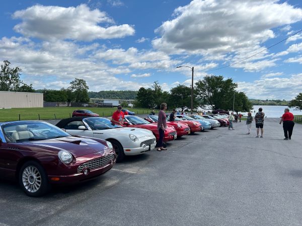 Mid Atlantic Thunderbird Club arranged a meet up for lunch with Lehigh Valley Thunderbird Club and Central PA Thunderbird Club to celebrate Thunderbird Appreciation Day May 18, 2025. We had magnificent weather and ate a prime rib brunch at John Wright Restaurant in a restored factory. There were 42 people and 18 Thunderbirds! Many of us wore tshirts and hats with the 70th anniversary logo that Tom Przedwojewski designed.